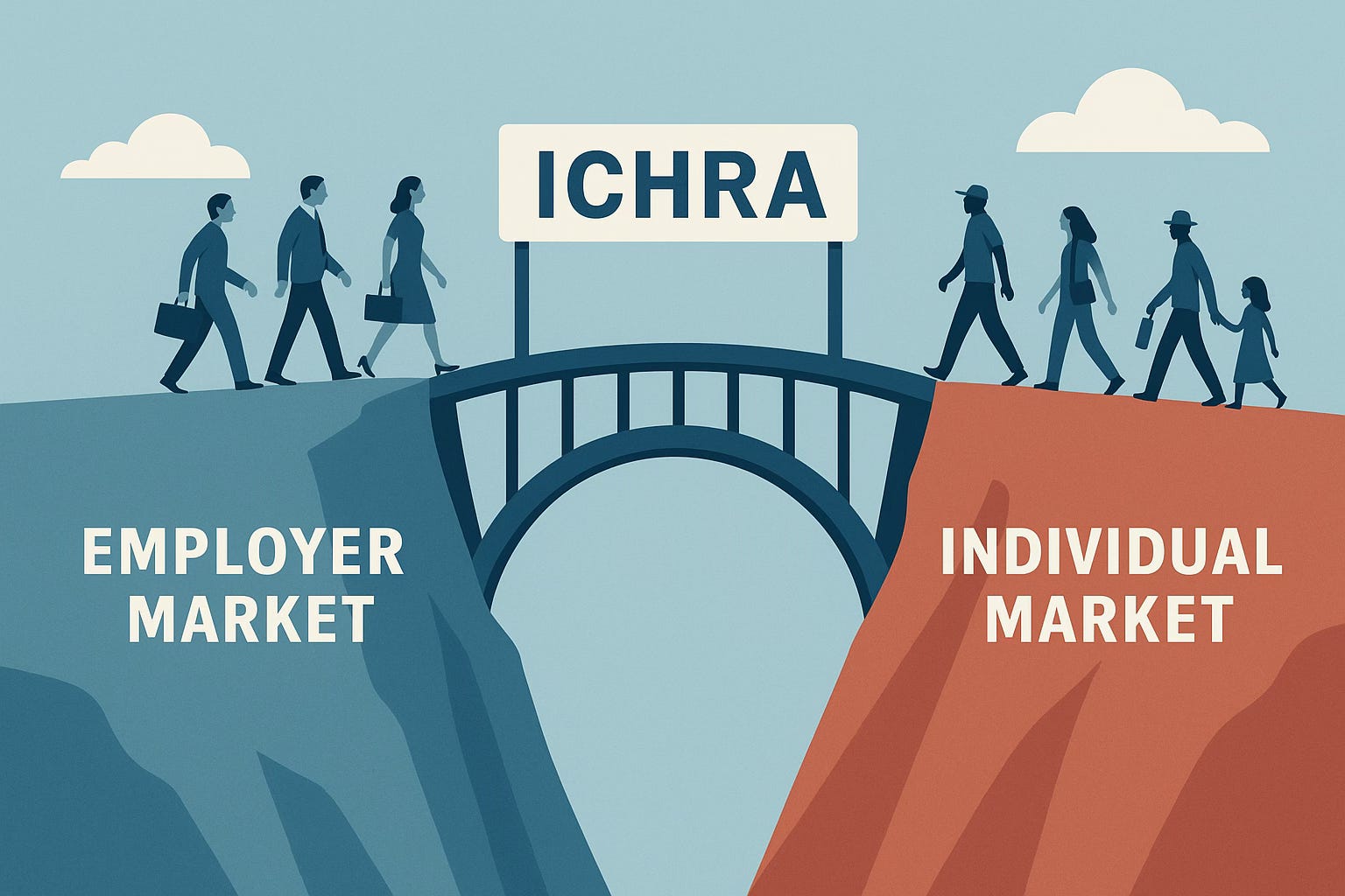 Tomorrow, every employer stops offering health insurance directly. Instead, they contribute what they were already spending—around $8,500 for individuals, $30,000 for families—to their employees’ ICHRAs. Employees use that money to buy coverage on the individual market.
